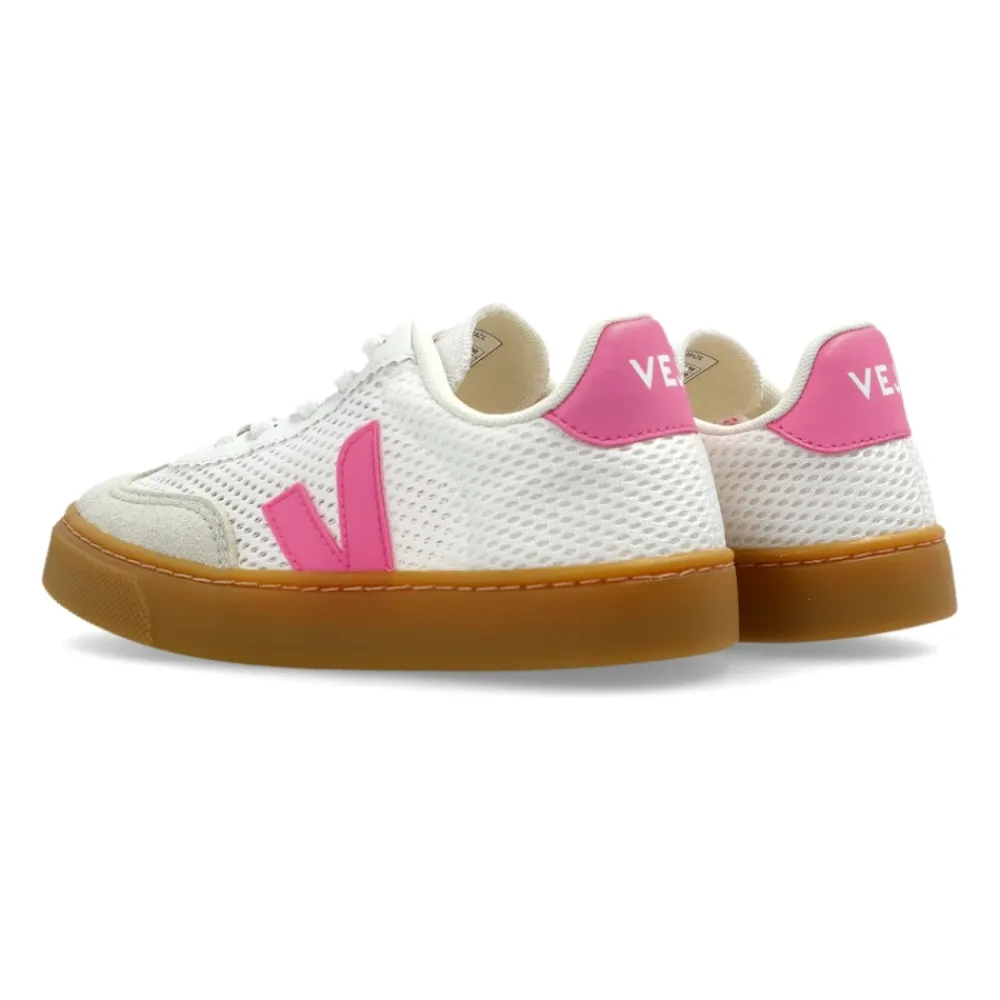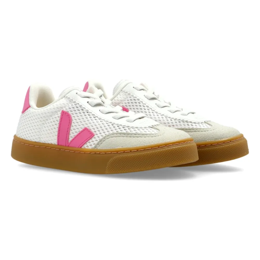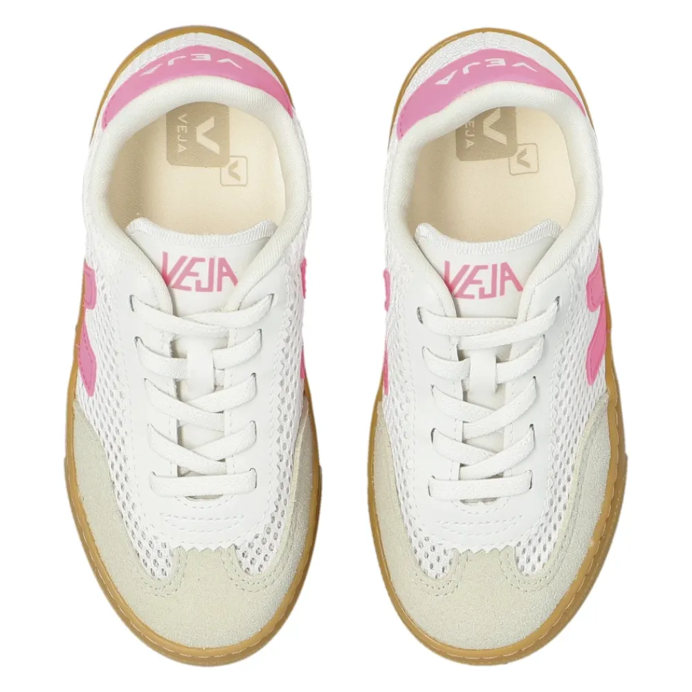 Veja Small Volley Aircell kombiniert ein leichtes Aircell-Mesh-Obermaterial mit Wildledereinsätzen für atmungsaktiven Tragekomfort im Alltag. Die niedrig geschnittene Silhouette und das markante „V“-Logo sorgen für einen sportlichen, wiedererkennbaren Look. Hauptmerkmale: Weiß | Pink | Aircell-Mesh und Wildleder | Atmungsaktiv | Schnürverschluss | Robuste Gummisohle für Stabilität und Traktion | Low-Cut-Sneaker | Abgerundete Spitze | Kontrastierendes seitliches ‚V‘-Logo | Pinkfarbene Logo-Akzente | Abmessungen & Passform: Sohlenhöhe am höchsten Punkt: 2,5 cm | Zusammensetzung & Pflege: Aircell-Mesh (Polyester) | Wildleder | Leder | Gummisohle | Polyesterfutter | Baumwollschnürsenkel