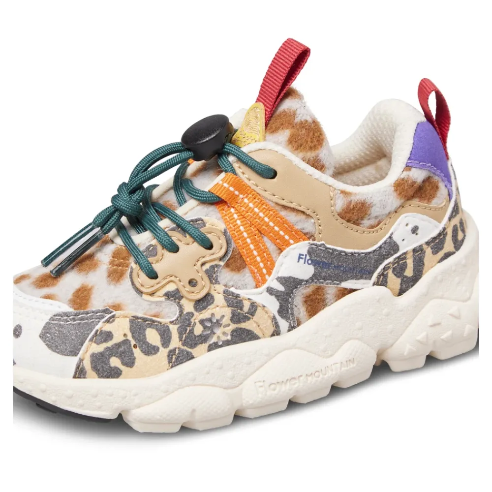 Sportlich mit einem glamourösen Herzen mischen diese Sneakers den aktiven Stil von Flower Mountain mit dem Junior-Know-how von Naturino. Das Ergebnis ist ein leichter und supercooler Schuh mit einem Obermaterial aus Kunstleder und Synthetik, das mit einem Tier-Aufdruck verziert ist. Der Kordelzugverschluss und die ultraleichte Gummisohle runden das Design ab.