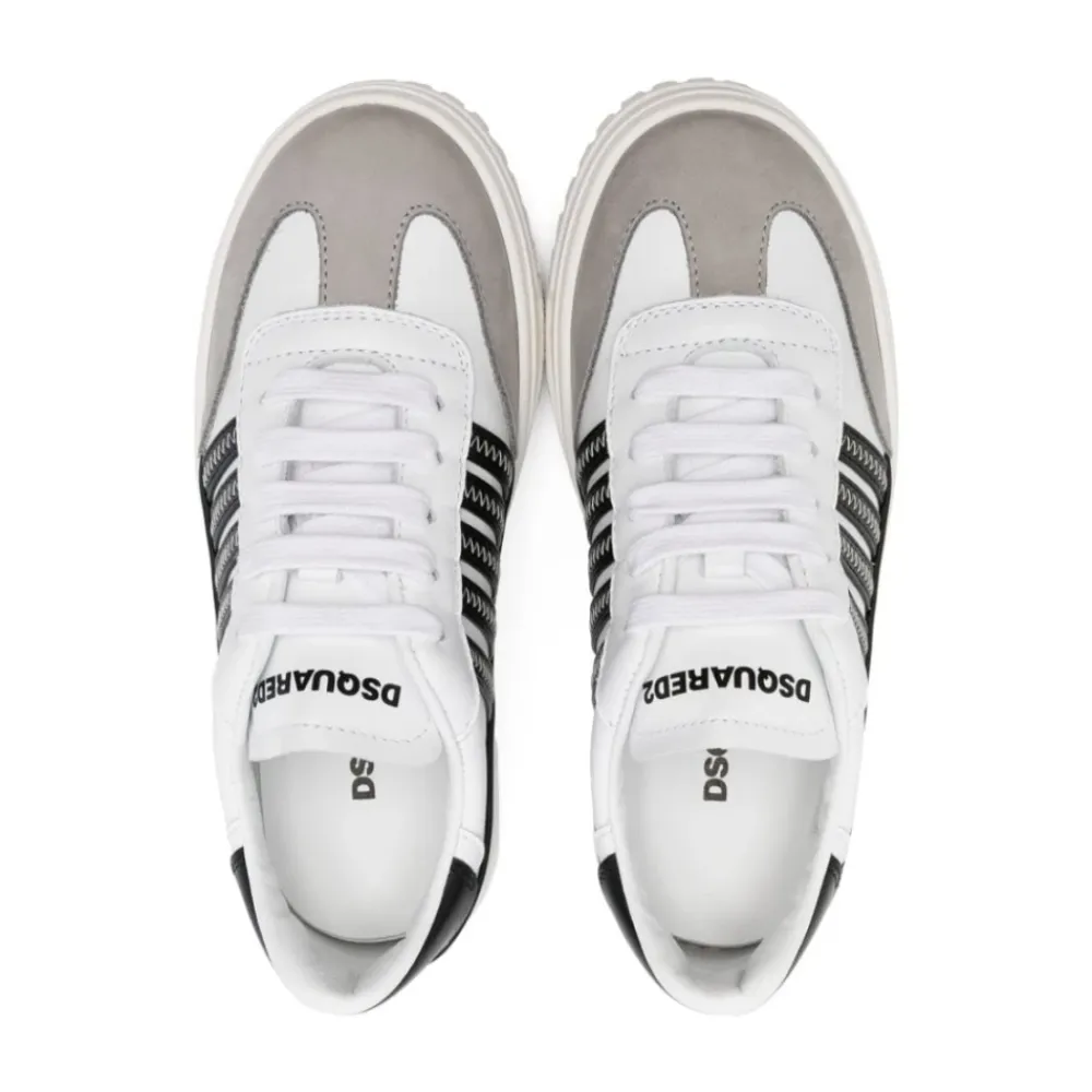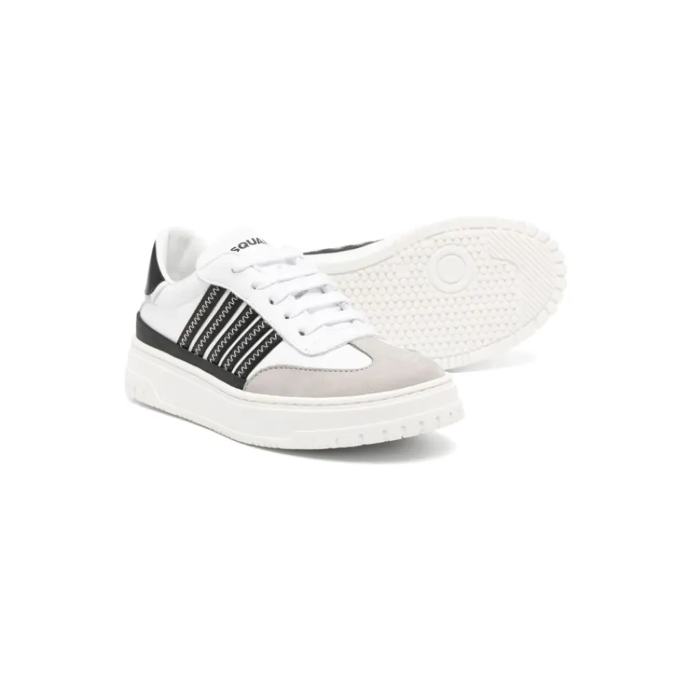 Dsquared2 Sneakers kombinieren Leder- und Wildledereinsätze mit einer runden Spitze und Schnürverschluss. Markante, kontrastierende Seiten- und Fersendetails machen sie zu einem herausragenden, lässigen Sneaker für den Alltag. Hauptmerkmale: Multicolor | Weiß | Leder | Wildleder | Schnürverschluss | Runde Spitze | Design mit Paneelen mit Leder- und Wildledereinsätzen | Kontrastierendes Seitenmotiv | Kontrastierendes Fersenelement | Zusammensetzung & Pflege: Futter: Stoff 100% | Obermaterial: Stoff 100%, Kalbsleder 100% | Sohle: Gummi 100%