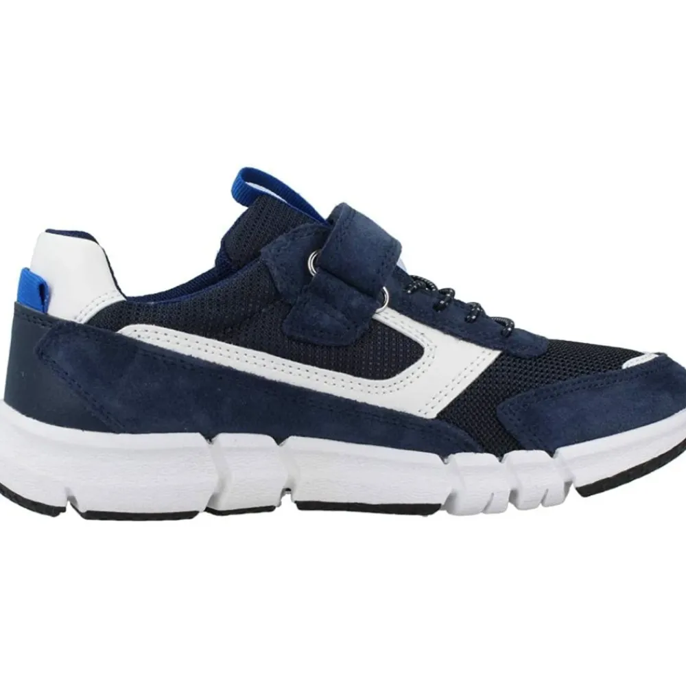 Geox Sneakers mit zweifarbigem Design und Klettverschluss, mit einer strapazierfähigen Sohle, die alltäglichen Halt und Komfort bietet. Hauptmerkmale: Blau | Blau | Strapazierfähige Sohle für Halt und Komfort | Klettverschluss | Zweifarbiges Design | Abgerundete Zehenpartie