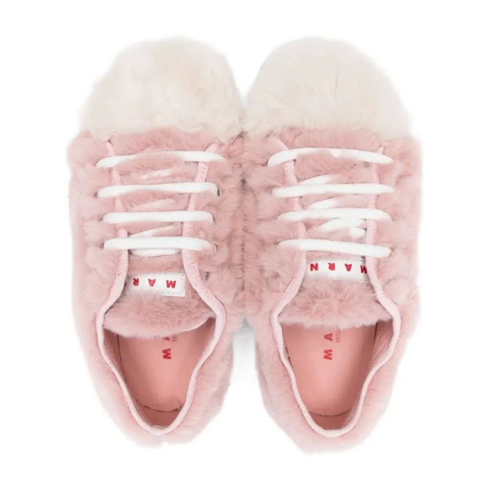 Marni Sneakers mit Details aus Kunstfell für einen verspielten, strukturierten Look. Mit runder Zehenpartie und flacher Gummisohle vereinen sie auffälligen Stil mit Alltagstauglichkeit. Hauptmerkmale: Pink | Kunstfell | Schnürverschluss | Kunstfellbesatz | Runde Zehenpartie | Flache Sohle | Schnürung vorne | Zusammensetzung und Pflege: Sohle: 100 % Gummi | Obermaterial: 99 % Polyester, 1 % Kalbsleder | Futter: 100 % Kalbsleder