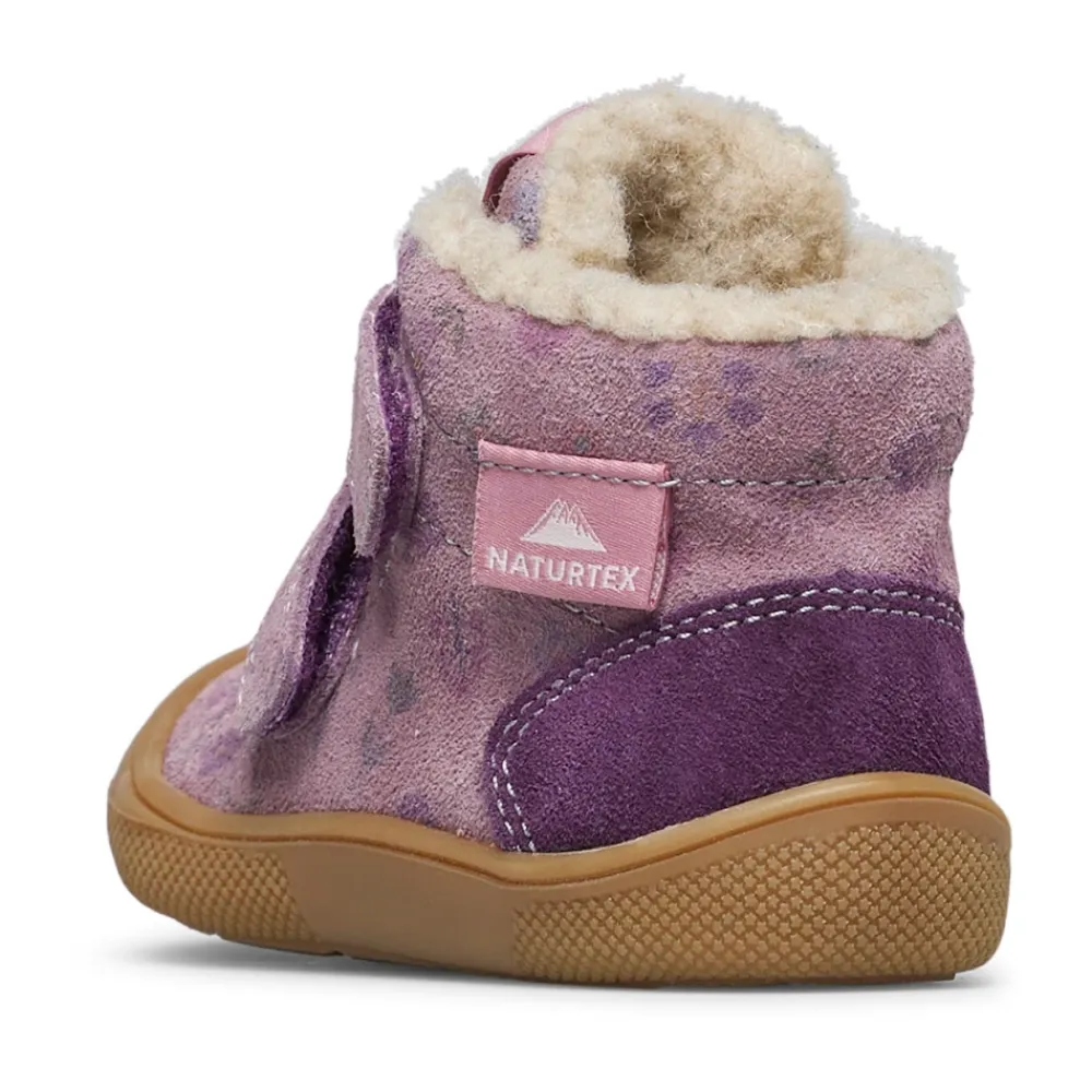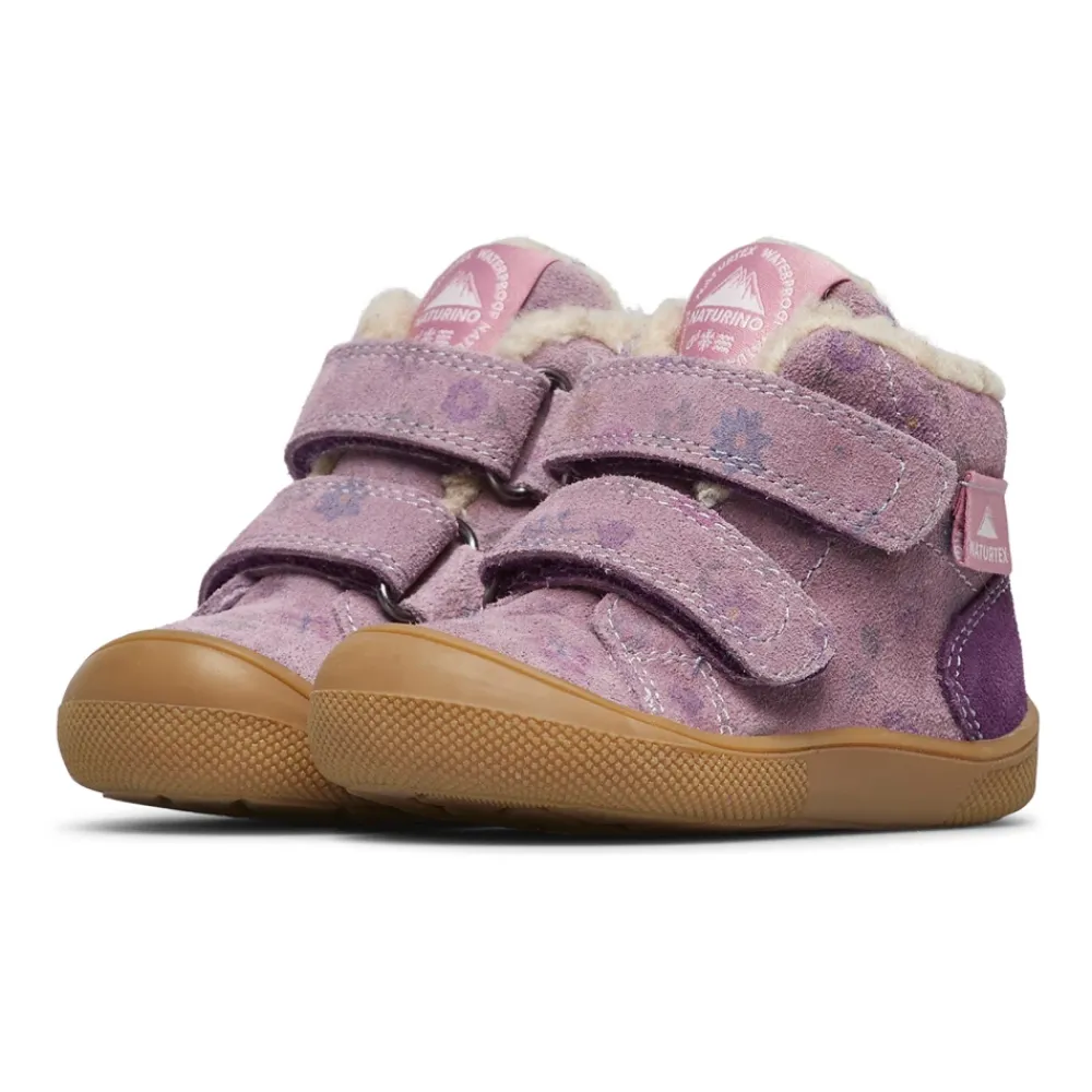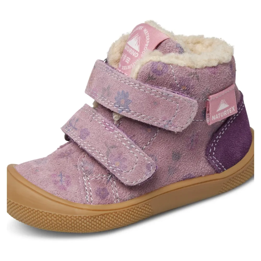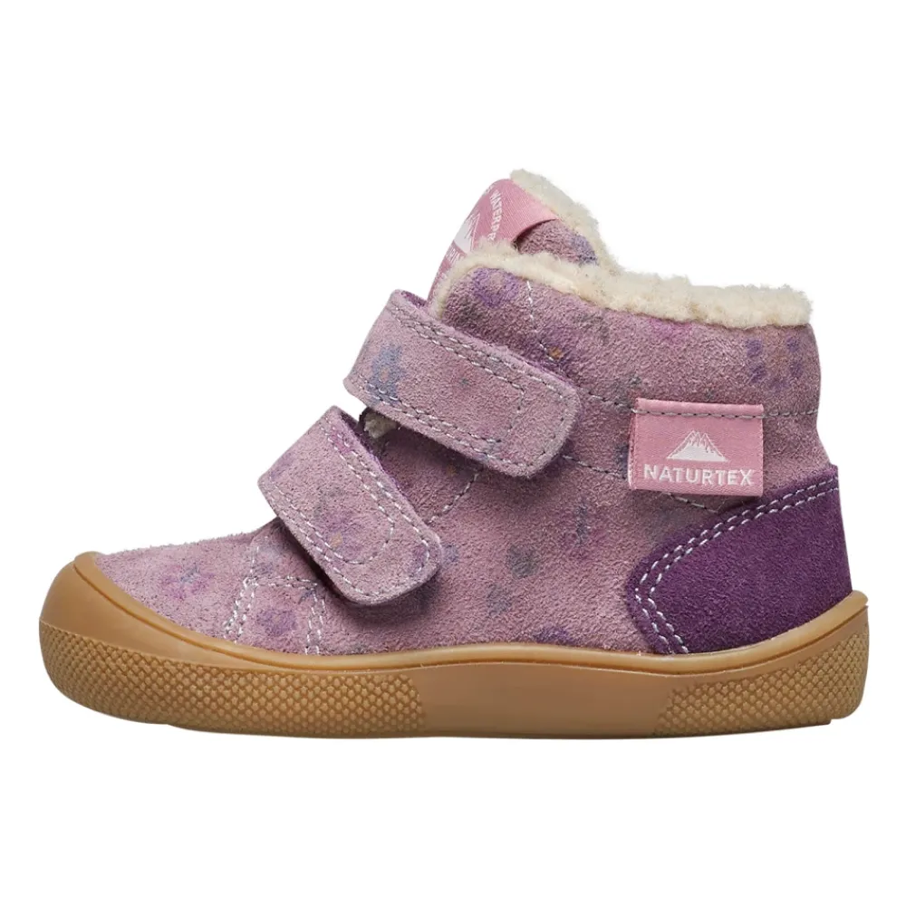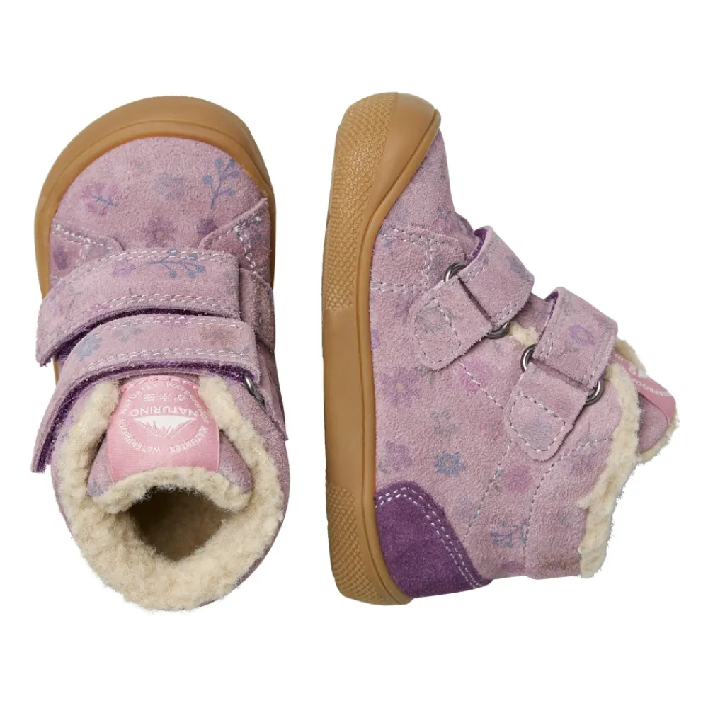 Naturino Spinni VL WP. Wildlederstiefeletten kombinieren ein weiches Wildleder-Obermaterial mit einem Ton-in-Ton-Blumenmuster und einem Doppelriemenverschluss für einfaches Anziehen. Wollfutter und -innensohle sorgen für Wärme, während eine Gummi-Außensohle mit verstärkter Zehenkappe kleine Füße schützt. Hauptmerkmale: Lila | Violett | Wildleder | Isolierendes Wollfutter für Wärme | Doppelriemenverschluss | Wollfutter und -innensohle | Verstärkte Zehenkappe | Gummi-Außensohle | Weiches Wildleder-Obermaterial | Ton-in-Ton-Blumenmuster | Knöchelhohe Silhouette | Maße & Passform: Barfußpassform | Materialzusammensetzung & Pflege: Wildleder (Obermaterial) | Wolle (Futter und Innensohle) | Gummi (Außensohle)