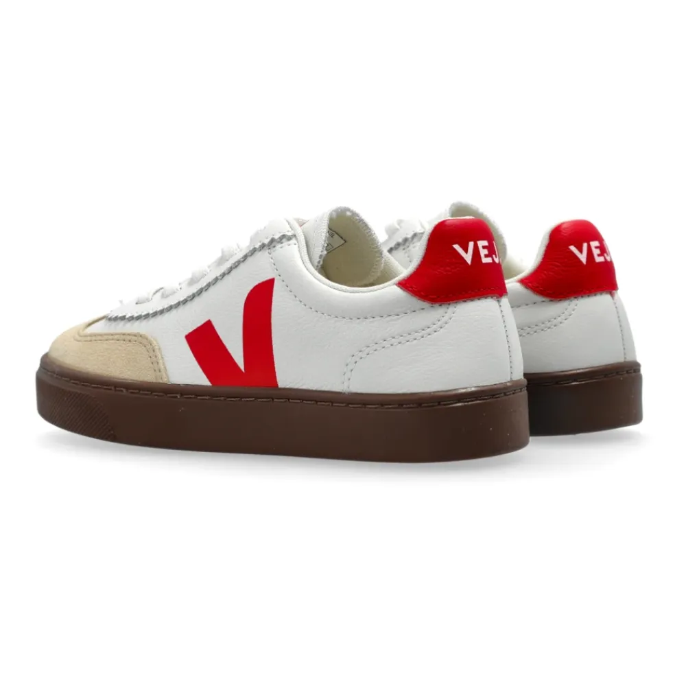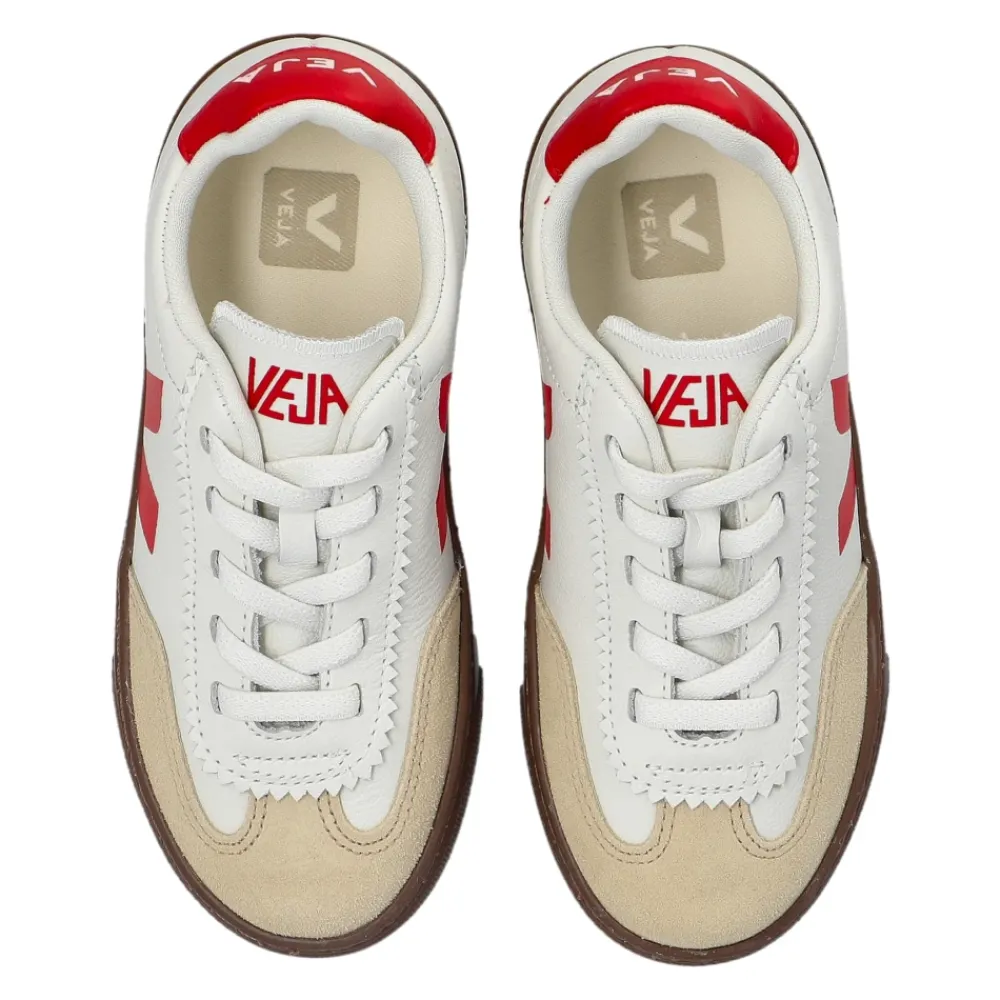 SMALL VOLLEY O.T. LEDER SNEAKER von Veja sind die Quintessenz minimalistischer Eleganz in einer Version, die den Jüngsten gewidmet ist. Die klassische Sneaker-Silhouette mit einer sanft gerundeten Zehenpartie und niedrigem Schaft wurde mit einer breiten, flexiblen Sohle verbessert, die Stabilität und Komfort bei alltäglichen Aktivitäten gewährleistet. Hochwertiges, natürliches Leder in zeitlosem Weiß wird durch beiges Wildleder an der Vorderseite ergänzt, das nicht nur mit seinem subtilen Kontrast beeindruckt, sondern auch die Schmutzresistenz erhöht. Das dezent platzierte „V“-Logo in kräftigem Rot und die markanten Inschriften an den Fersenlaschen unterstreichen den einzigartigen Charakter des Schuhs. Dieses Modell ist eine harmonische Mischung aus raffiniertem Design, Umweltbewusstsein und höchster Handwerkskunst. WARUM LOHNT ES SICH, DIESES PRODUKT ZU KAUFEN? * Natürliches Leder und Wildleder sorgen für Langlebigkeit und Komfort * Zeitloser, minimalistischer Stil * Markante Veja-Markendetails * Eine Wahl – umweltfreundliche Materialien und ethische Produktion * Perfekt für Kinder – Funktionalität und Tragekomfort. Sohlenhöhe an der höchsten Stelle: 2 cm