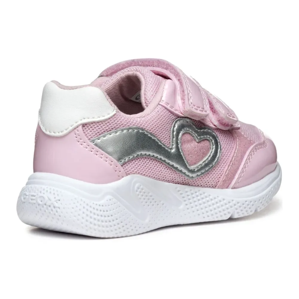 Die Geox Sprintye Sneakers kombinieren atmungsaktive Respira-Technologie mit gepolsterter Unterstützung für alltägliches Spielen und Freizeitkleidung. Das leichte Design und der schnelle Klettverschluss erleichtern das Anziehen und bieten Komfort bei aktiver Nutzung. Hauptmerkmale: Pink | Silber | Synthetik | Textil | Atmungsaktiv (Geox Respira) | Dämpfung zur Stoßabsorption | Flexible Laufsohle | Klettverschluss für einfaches An- und Ausziehen | Herausnehmbare Innensohle | Leichte Konstruktion | Glänzendes Mesh- und Lackleder-Effekt-Obermaterial | Dekorative Details an den Seiten | Runde Spitze | Zusammensetzung & Pflege: Obermaterial: 52% Synthetik, 48% Textil | Futter: 90% Textil, 10% Synthetik | Laufsohle: 100% Synthetik | Innensohle: 100% Textil