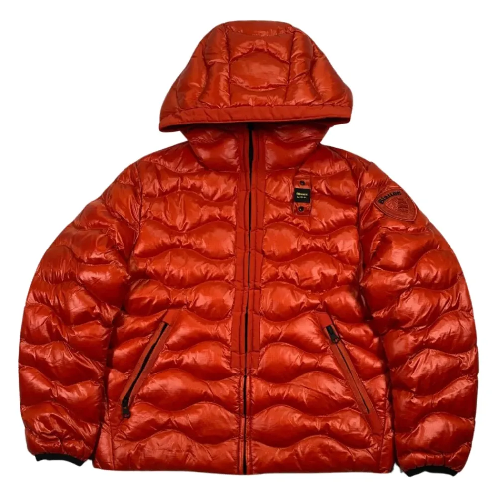 Blauer Kids orange gesteppte Winterjacke mit Frontreißverschluss, Logo-Patch auf der Brust, Logo am Arm, feste Kapuze, elastische Bündchen, zwei Seitentaschen. Außenmaterial: 100% Polyamid. Füllung: 100% Polyester.