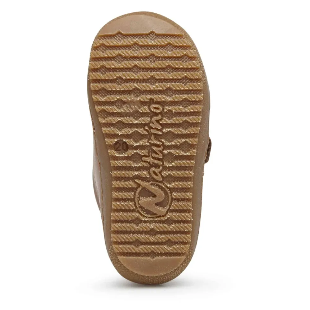Knöchelhohe Stiefelette mit verstärkter Schuhspitze und durch den doppelten Klettverschluss regulierbarer Passform. Ein Modell für alle Kleinkinder, die warme, bequeme Winterschuhe lieben. Tatsächlich hält das Wollfutter den Fuß schön warm und garantiert darüber hinaus die Regen-, Wind- und Schneefestigkeit dieses auch bei großer Kälte geeigneten Schuhs. Der Oberschuh besteht aus weichem, gebürstetem Nappaleder in der Farbe Cognac, das den Fuß sanft umschließt. Die rutschfeste Gummisohle macht den Schuh auch auf regennassen Straßen sicher. Diese bequeme, praktische und vielseitige Stiefelette ist ein Klassiker, der in keinem Schuhschrank fehlen sollte, um dem Herbst und Winter unbeschwert die Stirn bieten zu können.