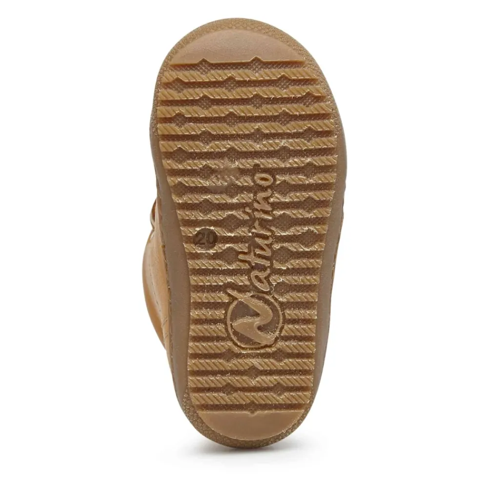 Knöchelhohe Stiefelette mit verstärkter Schuhspitze und durch den doppelten Klettverschluss regulierbarer Passform. Ein Modell für alle Kleinkinder, die warme, bequeme Winterschuhe lieben. Tatsächlich hält das Wollfutter den Fuß schön warm und garantiert darüber hinaus die Regen-, Wind- und Schneefestigkeit dieses auch bei großer Kälte geeigneten Schuhs. Der Oberschuh besteht aus weichem, gebürstetem, kürbisfarbenem Nappaleder, das den Fuß sanft umschließt. Die rutschfeste Gummisohle macht den Schuh auch auf regennassen Straßen sicher. Diese bequeme, praktische und vielseitige Stiefelette ist ein Klassiker, der in keinem Schuhschrank fehlen sollte, um dem Herbst und Winter unbeschwert die Stirn bieten zu können.