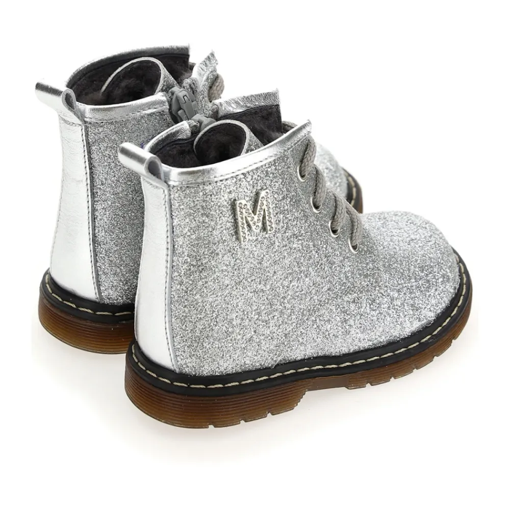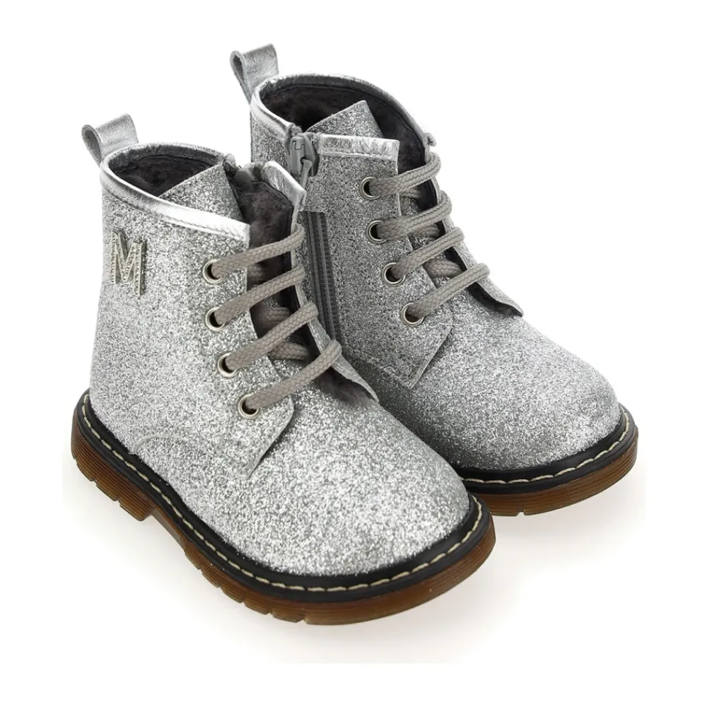 Fügen Sie der Garderobe Ihrer kleinen Tochter mit diesen glitzernden Knöchelstiefeln von Monnalisa etwas Glanz hinzu. Das ikonische M -Logo ist auf der Seite angebracht und macht sie sofort erkennbar. Die Stiefel bestehen aus Lurex-Material und verfügen über eine Schnür- und Reißverschlussverschluss für eine sichere Passform. Die Gummisohle sorgt für Haltbarkeit und Komfort für den ganzen Tag.