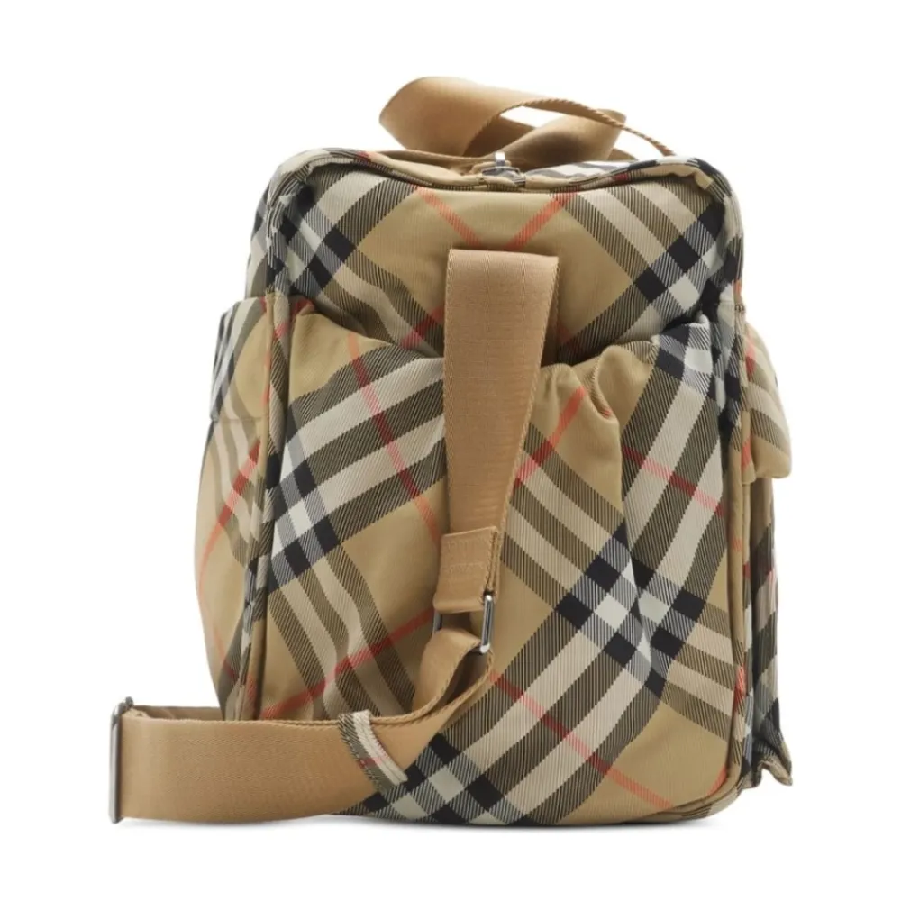 Entdecken Sie die Medium Check Diaper Bowling Bag von Burberry Kids, ein stilvolles und praktisches Accessoire für die Kleinen. Hergestellt aus strapazierfähigem 100% Polyester in einem sandigen Farbton, ist diese Schultertasche perfekt geeignet, um das Nötigste auf stilvolle Weise zu transportieren.