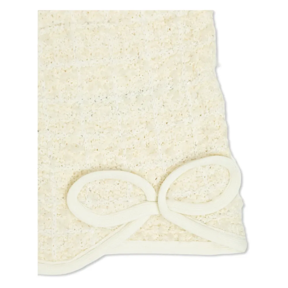CARDIGAN MIT DEKORATIVEM FINISH von Self-Portrait Kids ist die Verkörperung raffinierter Eleganz, inspiriert von den höchsten Standards der weltweiten Kindermode. Der klassische, leicht kastige Schnitt betont subtil die Taille, während das taillenlange Design seinen zeitlosen Charakter unterstreicht. Der cremefarbene Bouclé-Strick mit einer markanten Textur verleiht dem Cardigan ein luxuriöses Aussehen. Der abgerundete Saum, der mit einer dekorativen Borte versehen ist, besticht durch seine Details, ebenso wie die beiden symmetrischen Brusttaschen, die mit eleganten Perlmutt-Knöpfen verschlossen sind. Die Einzigartigkeit dieses Stücks wird durch auffällige, bogenförmige Applikationen am unteren Rand und sorgfältige Verarbeitung weiter betont, was dieses Modell zu einer außergewöhnlichen Wahl für diejenigen macht, die anspruchsvollen Stil und unvergleichliche Qualität schätzen. WARUM SOLLTEN SIE DIESES PRODUKT KAUFEN? * Exklusives, sorgfältig ausgewähltes Strickmaterial mit luxuriöser Textur * Außergewöhnliche Verzierungen in Form von dekorativen Schleifen * Makellose Verarbeitung, charakteristisch für die besten Designer * Funktionale Brusttaschen mit dekorativen Knöpfen * Unterscheidender, eleganter Schnitt, der Ihren Stil unterstreicht