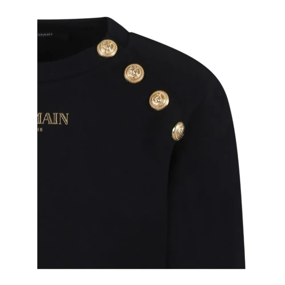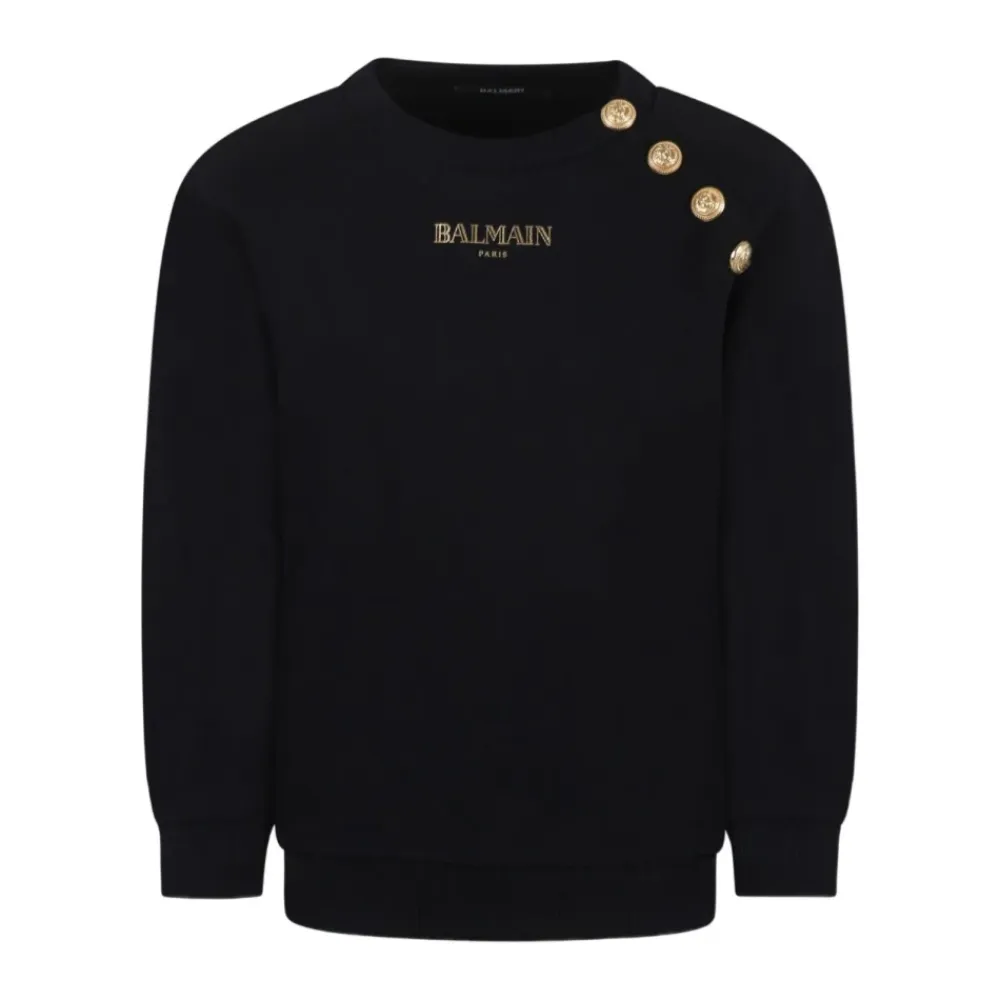 Wir präsentieren das Balmain Sweatshirt mit Logo-Print, ein stilvolles Teil, perfekt für die Freizeit. Dieses Sweatshirt besticht durch seinen ikonischen Logo-Print und eine bequeme Passform. Wichtige Merkmale: Schwarz | Baumwolle | Logo-Print | Lange Ärmel | Rundhalsausschnitt | Maße und Passform: Normale Passform | Zusammensetzung und Pflege: 100% Baumwolle | Maschinenwäsche kalt, Trocknergeeignet bei niedriger Temperatur.