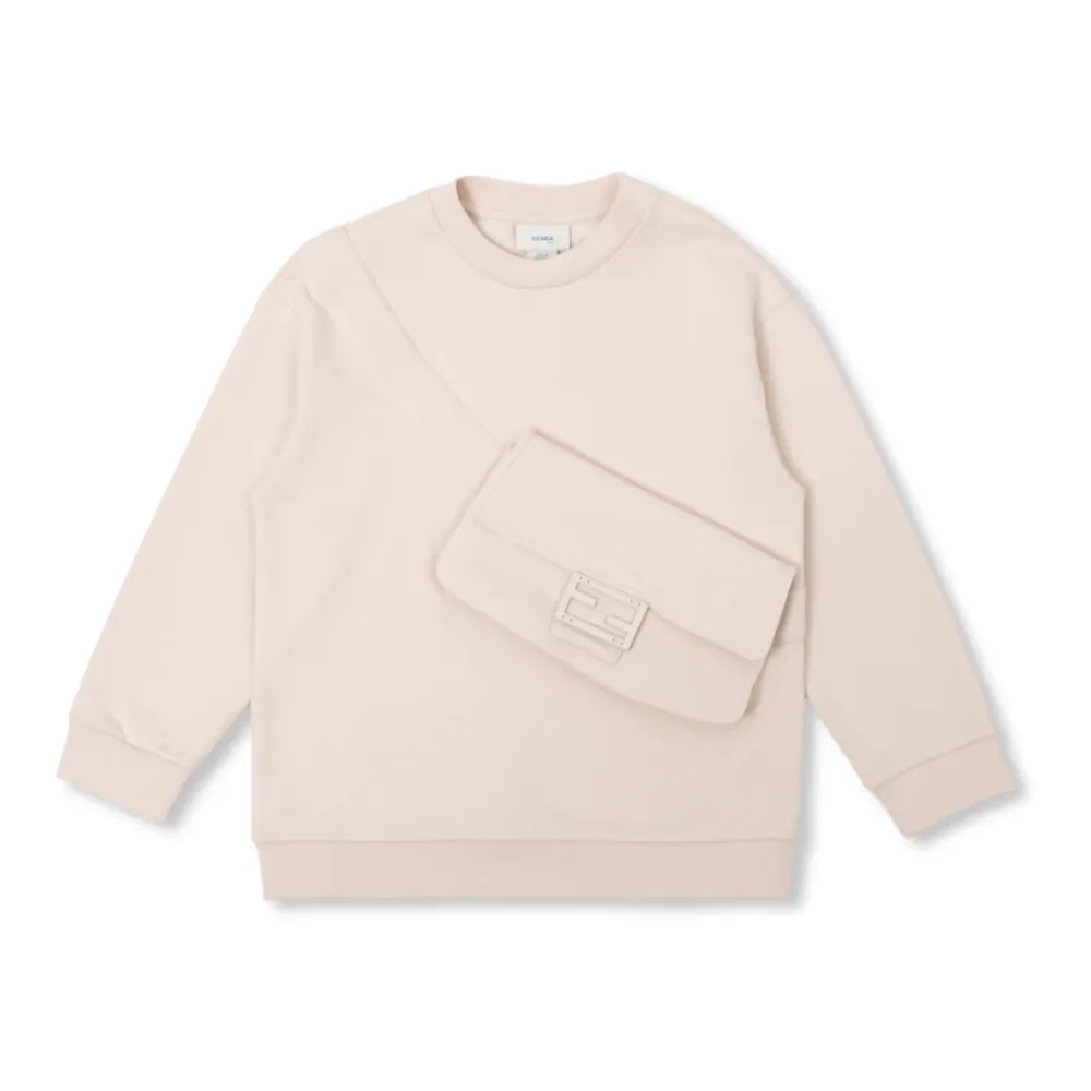 Dieses cremefarbene Sweatshirt mit Rundhalsausschnitt von Fendi Kids vereint Stil und Funktionalität mit seiner Druckknopf-Klappentasche und dem Logo-Detail. Es ist aus Baumwolle gefertigt und bietet eine bequeme Passform mit gerippten Abschlüssen an Saum und Bündchen. Wichtige Merkmale: Creme | Beige | Baumwolle | Druckknopf-Klappentasche | Rundhalsausschnitt | Gerippte Abschlüsse an Saum und Bündchen | Logo-Detail | Maße und Passform: Normale Passform | Zusammensetzung und Pflege: 100% Baumwolle | Maschinenwäsche kalt, Trocknergeeignet bei niedriger Temperatur.