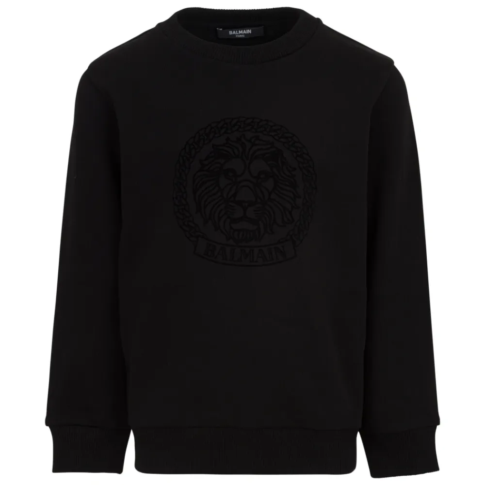 Balmain Rundhals-Sweatshirt mit beflocktem Samtlogo für einen raffinierten Casual-Look. Entworfen mit gerippten Abschlüssen und einem klassischen Rundhalsausschnitt für den Alltag. Hauptmerkmale: Schwarz | Nero | Baumwolle | Rundhalsausschnitt | Lange Ärmel | Beflocktes Samtlogo | Gerippte Abschlüsse | Maße & Passform: Normale Passform | Materialzusammensetzung & Pflege: 100% Baumwolle | Maschinenwäsche kalt.
