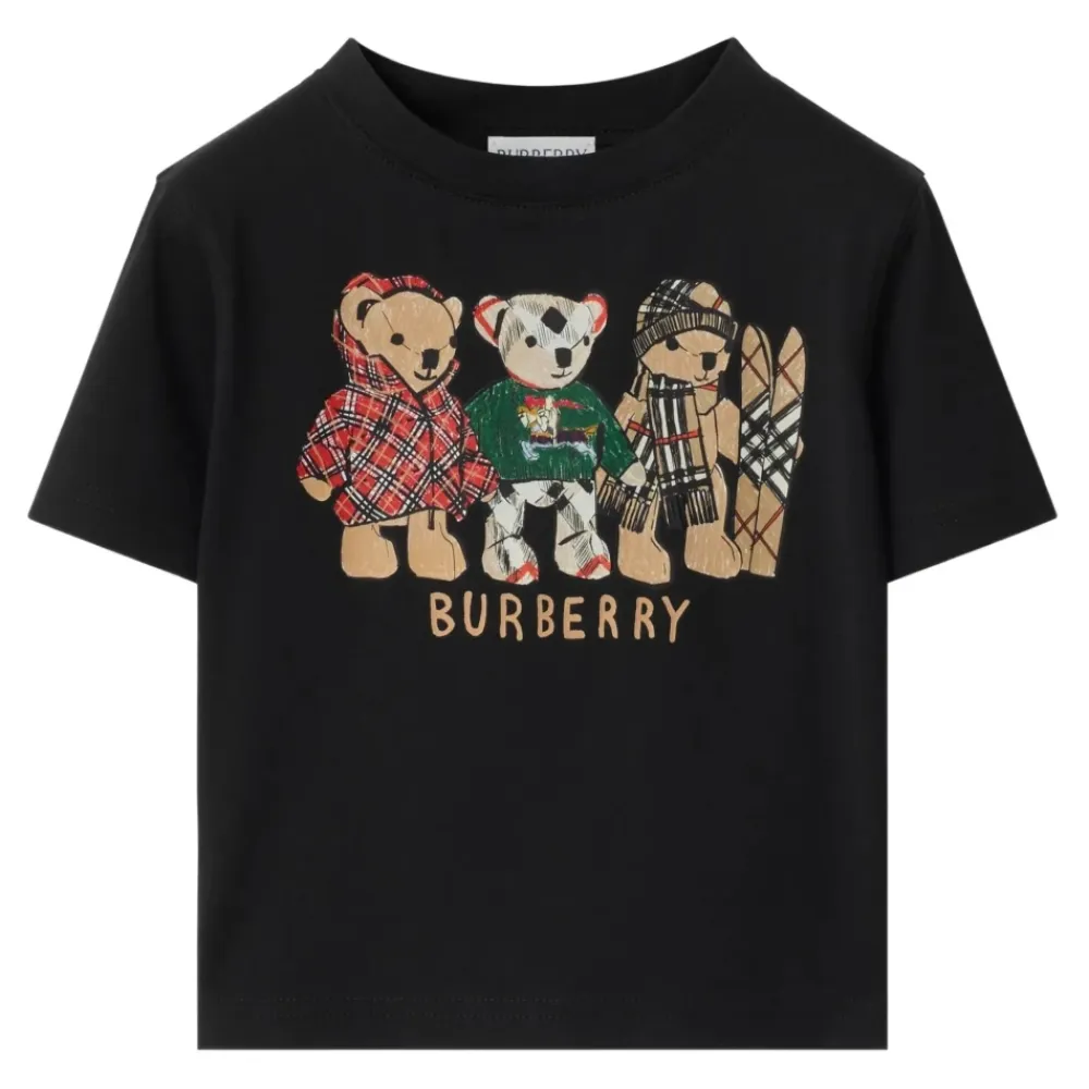 Burberry T-Shirt mit Rundhalsausschnitt und Druckknopf an der Schulter für einfaches Anziehen sowie gedrucktem Burberry-Schriftzug auf der Vorderseite. Die weiche Baumwollkonstruktion bietet täglichen Komfort. Hauptmerkmale: Schwarz | Baumwolle | Druckknopfverschluss an der Schulter | Gerippter Rundhalsausschnitt | Gedruckter Burberry-Schriftzug auf der Vorderseite | Zusammensetzung & Pflege: 100 % Baumwolle | Maschinenwäsche.