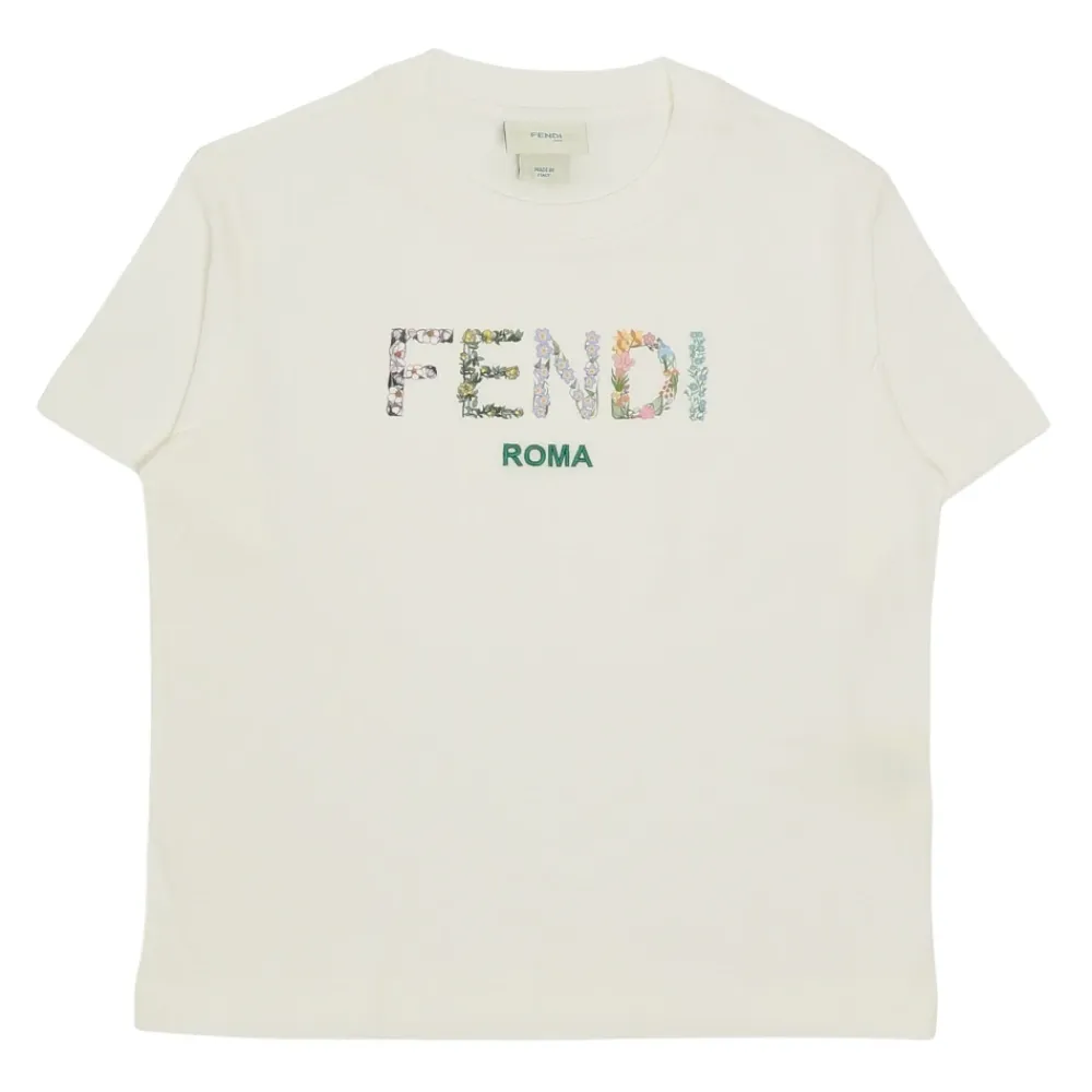 Fendi T-Shirt in Weiß | Gesso präsentiert eine klassische Silhouette mit Rundhalsausschnitt und einem charakteristischen Logo-Print. Gefertigt aus weichem Baumwolljersey für ein angenehmes Tragegefühl im Alltag. Hauptmerkmale: Weiß | Gesso | Baumwolle | Atmungsaktives Gewebe | Weicher Jersey | Pflegeleicht | Rundhalsausschnitt | Kurze Ärmel | Logo-Print auf der Vorderseite | Gerader Saum | Gerippter Ausschnitt | Maße & Passform: Reguläre Passform | Materialzusammensetzung & Pflege: 100% Baumwolle | Maschinenwäsche bei 30°C.