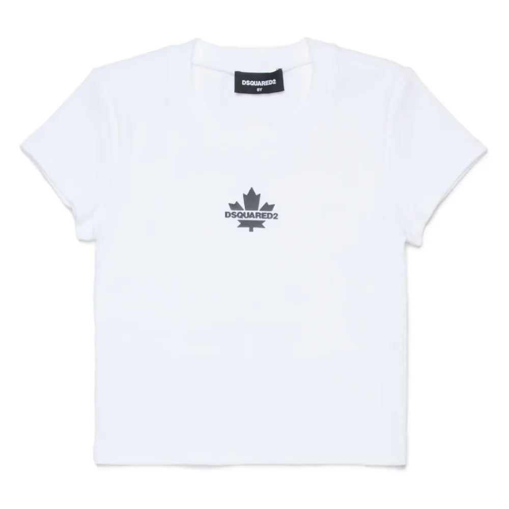 Dsquared2 T-Shirt in gerippter Ausführung mit kurzen Ärmeln und Gummi-Logo. Entworfen für lässige Alltagskleidung mit einem klaren Rundhalsausschnitt. Hauptmerkmale: Weiß | Bianco | Geripptes Material | Kurze Ärmel | Rundhalsausschnitt | Gummi-Logo