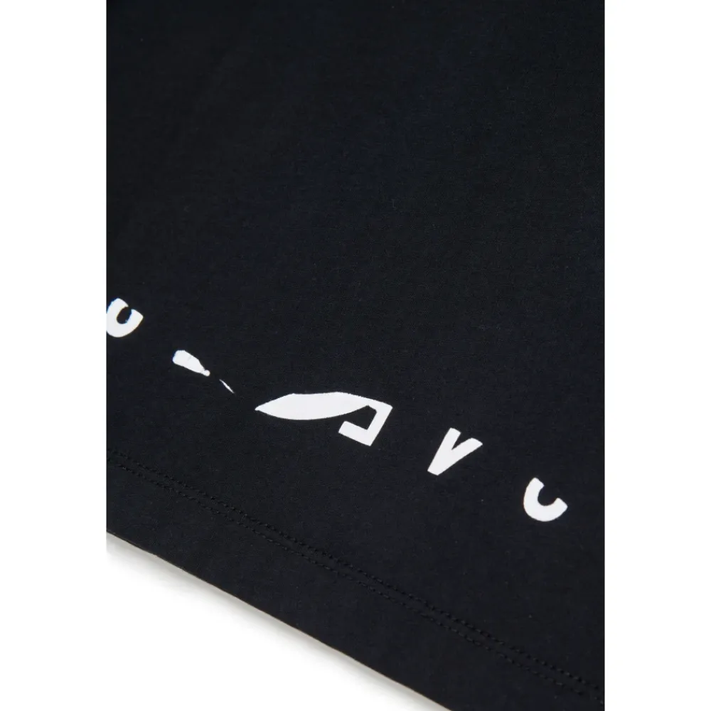 Maison Margiela Kurzarm-T-Shirt mit V-Ausschnitt und kontrastierenden Logo-Prints auf Vorder- und Rückseite. Ein minimalistisches Basic-Teil, das durch ein farblich abgesetztes Logo die Markendetails hervorhebt. Hauptmerkmale: Schwarz | Nero | V-Ausschnitt | Kurze Ärmel | Logo-Print auf Vorder- und Rückseite | Kontrastfarbenes Logo