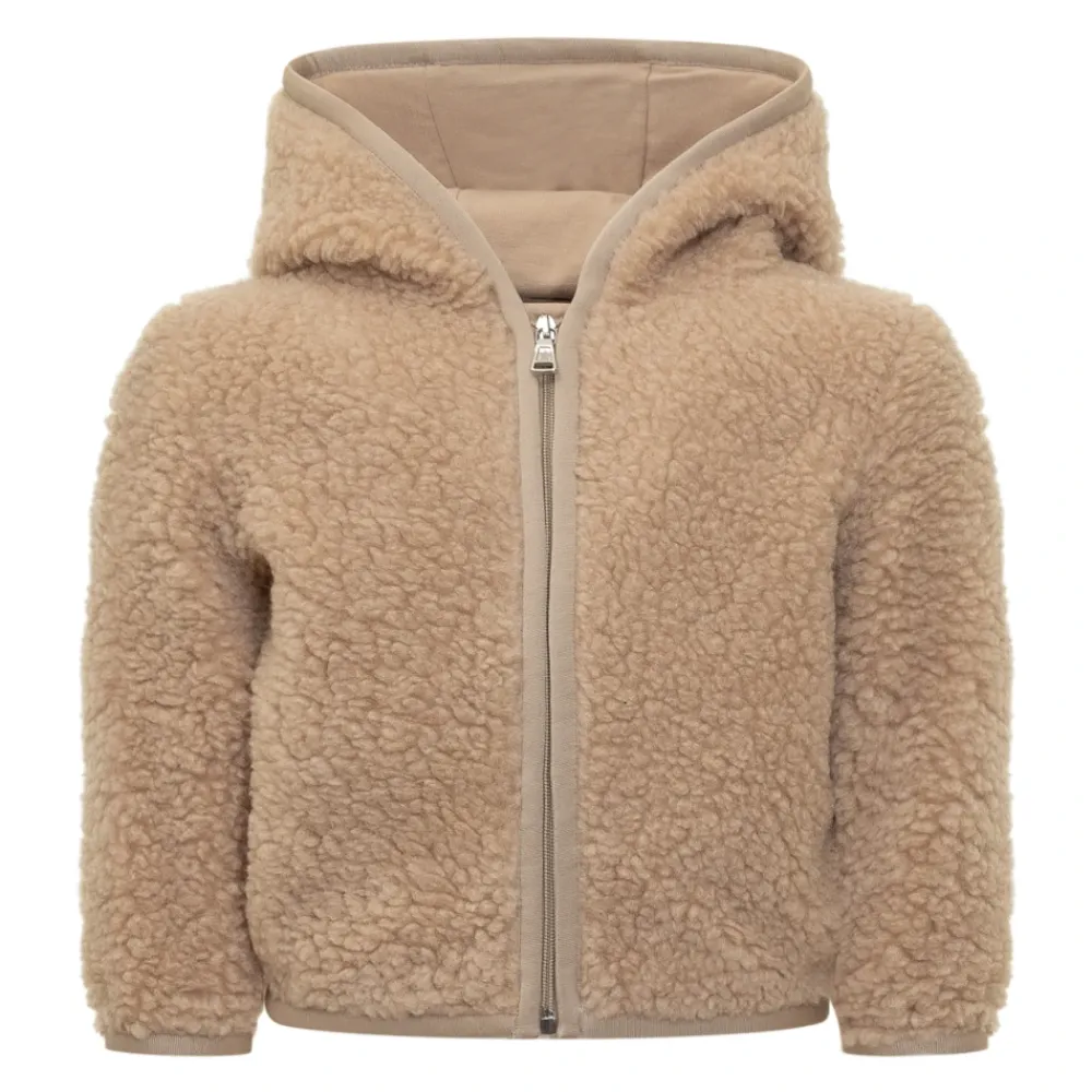 Der Moncler Teddy Zip-Up Hoodie kombiniert plüschiges Teddy-Fleece mit praktischen Details für den Alltag. Das Kapuzendesign mit Frontreißverschluss und Jersey-Abschlüssen bietet einfaches Layering und ein weiches, angenehmes Tragegefühl. Wichtige Merkmale: Beige | Teddy-Fleece | Weiches, isolierendes Teddy-Material | Bequemes Stretch-Baumwolljersey-Futter | Verstellbare Kapuze mit dekorativen Ohren | Frontreißverschluss | Vordertaschen | Elastischer Saum | Kapuzensilhouette | Bärenohr-Detail an der Kapuze | Ton-in-Ton-Jersey-Abschlüsse | Zusammensetzung und Pflege: Basismaterial: 85% Polyester, 15% Polyamid | Futter: 92% Baumwolle, 8% Elastan | Maschinenwäsche max. 30°C (sehr schonender Waschgang). Nicht bleichen. Nicht im Wäschetrockner trocknen. Bügeln max. 110°C ohne Dampf. Nicht chemisch reinigen. Professionelle Nassreinigung (sehr schonend). Liegend im Schatten trocknen.