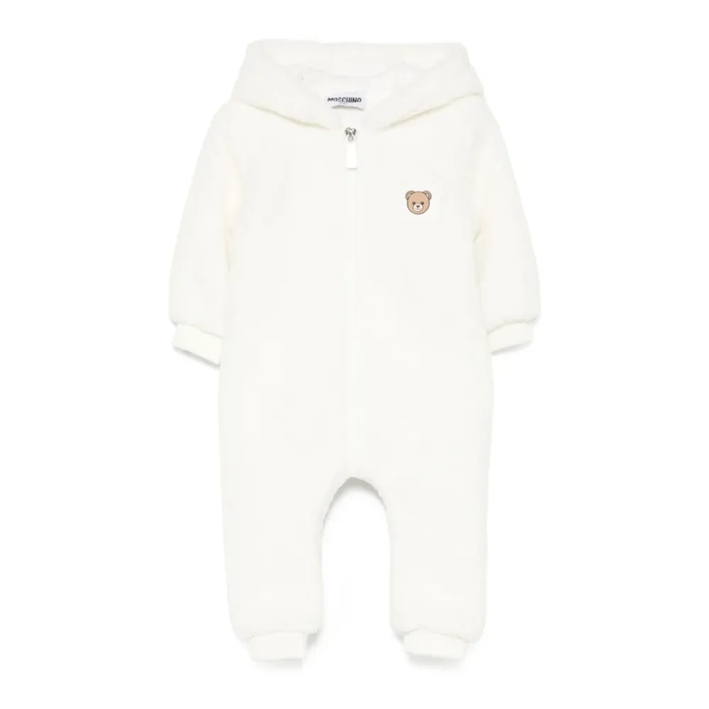 Der Moschino Teddybär-Body mit Kapuze kombiniert verspielte Teddybär-Stickereien mit einer praktischen Kapuze und einem Frontreißverschluss für einfaches Anziehen. Er ist für den täglichen Gebrauch konzipiert und legt Wert auf Komfort und einfaches Verschließen. Hauptmerkmale: Beige | Creme | Frontreißverschluss | Kapuzenausschnitt | Teddybär-Stickerei | Lange Ärmel