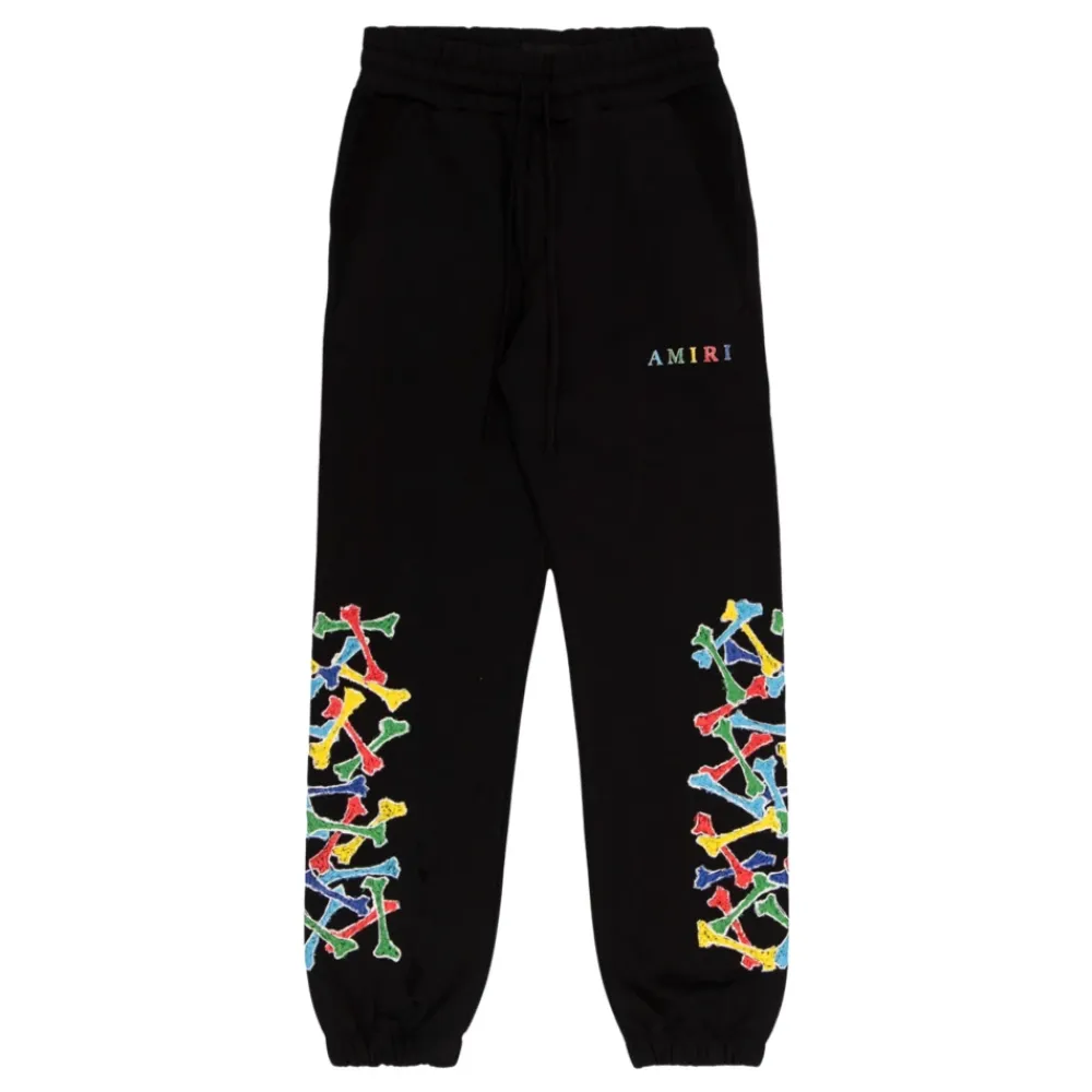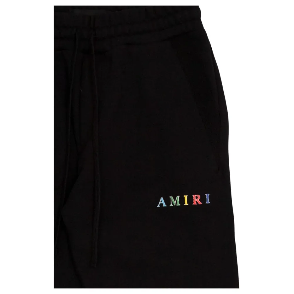Die Amiri Trainingshose verbindet lässigen Komfort mit einem auffälligen Logo-Detail. Sie ist für den täglichen Gebrauch konzipiert und verfügt über einen verstellbaren Bund und elastische Bündchen für einen sicheren Sitz. Hauptmerkmale: Schwarz | Baumwolle | Verstellbarer Kordelzugbund | Zwei Seitentaschen | Eine Gesäßtasche | Elastische Bündchen | Kontrastierender, mehrfarbiger Logo-Print auf der Vorderseite | Logo-Patch auf der Rückseite | Maße & Passform: Normale Passform | Materialzusammensetzung & Pflege: 100 % Baumwolle