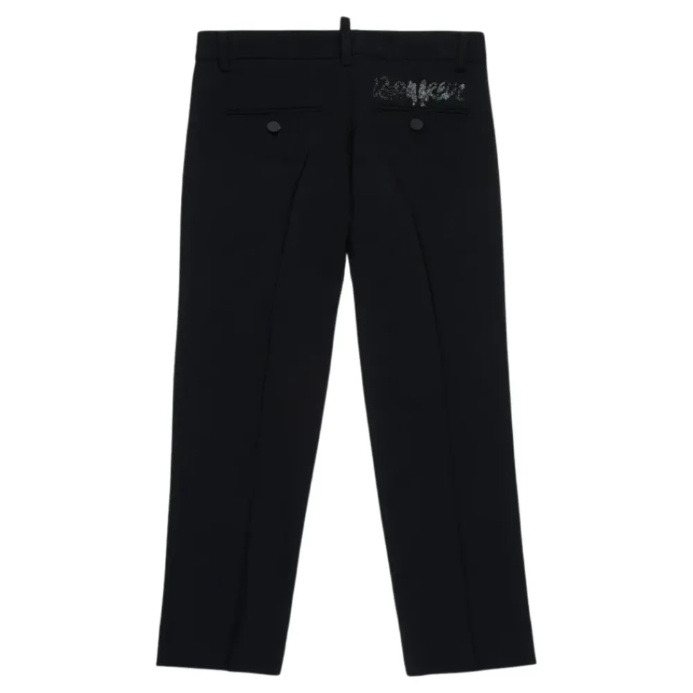 Dsquared2 Hosen aus frischer Stretch-Wolle mit Bundfalten und einem dezenten Glitzerlogo. Sie wurden für Abendpartys und besondere Anlässe entworfen und verbinden eine formelle Struktur mit einem komfortablen, gefütterten Innenraum. Hauptmerkmale: Schwarz | Nera | Stretch-Wolle | Vordere Leistentaschen | Geknöpfte Gesäßtaschen | Innenfutter | Bundfalten vorne und hinten | Glitzerndes Dsquared2-Logo auf der Rückseite | Zusammensetzung & Pflege: 53% Polyester, 43% Wolle, 4% Elastan | Futter: 51% Viskose, 49% Polyester
