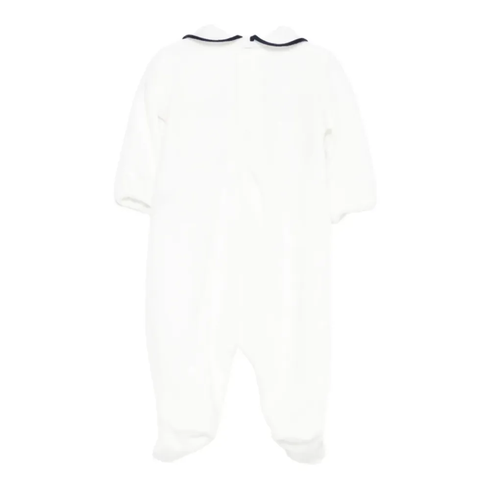 Little Bear Tutina Teddy Bear ist ein Strick-Einteiler mit einem Intarsien-Teddy-Motiv und einem Peter-Pan-Kragen. Er kombiniert klassisches Design mit einfachen Verschlüssen für den Alltag und besondere Anlässe. Hauptmerkmale: Weiß | Latte blu | Baumwolle | Reißverschluss hinten | Knopfverschluss | Peter-Pan-Kragen | Intarsienstrick | Teddybär-Motiv | Lange Ärmel | Rippstrickbündchen | Zusammensetzung & Pflege: 100% Baumwolle | Handwäsche