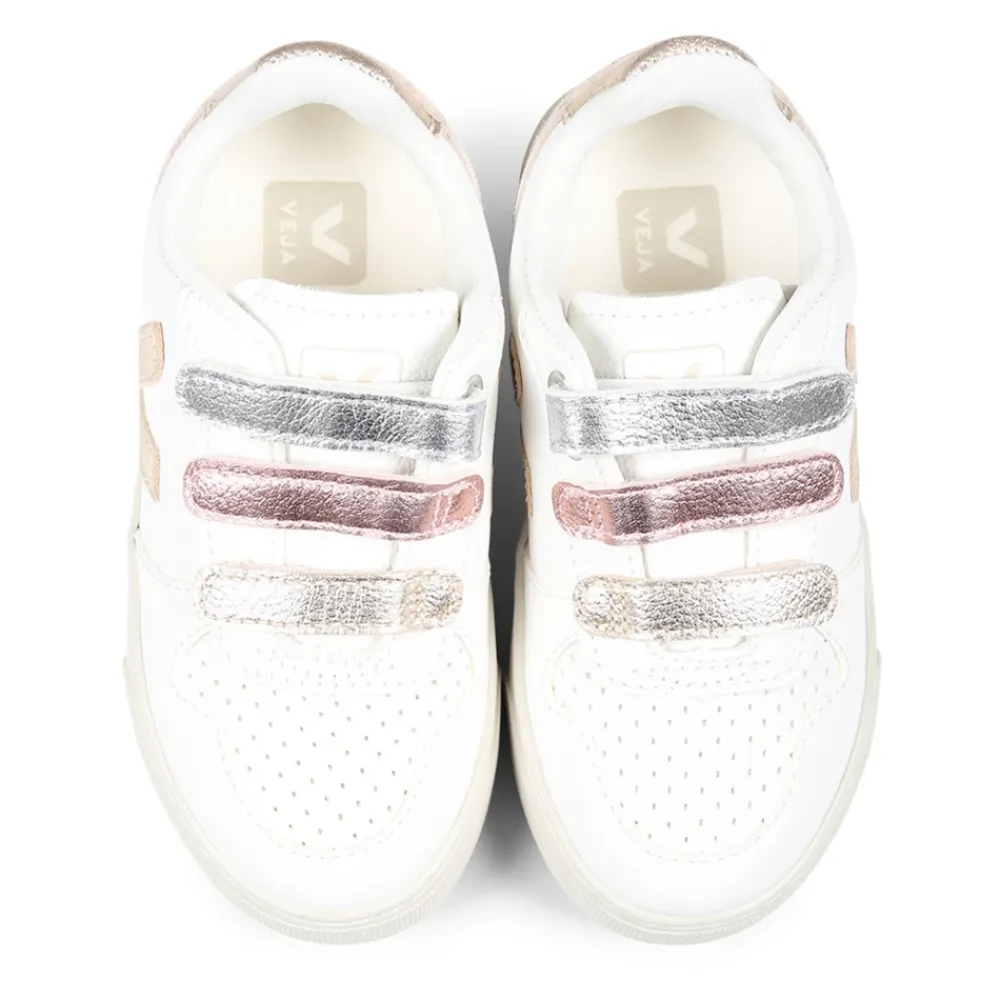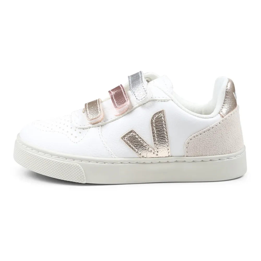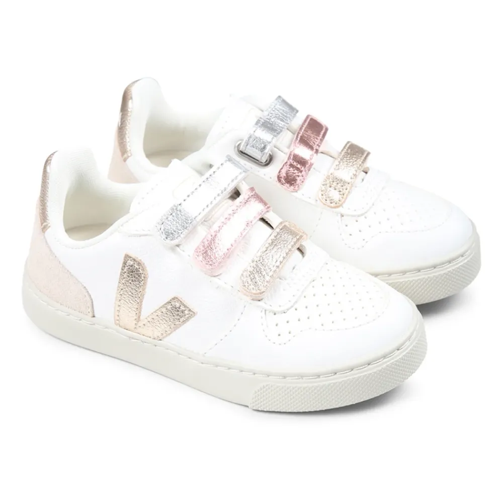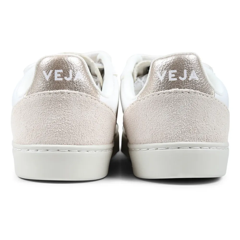 Die V-10 Sneakers von Veja vereinen Stil und Komfort mit ihrem chromfreien Leder und den mehrfarbigen Metallic-Riemen, ideal für den täglichen Gebrauch. Wichtige Merkmale: Weiß | Multicolor | Weiß | Leder | Klettverschluss | Metallic-Riemen | Wildledereinsatz an der Ferse | Goldlogo an den Seiten | Maße und Passform: Fallen groß aus, nimm eine ½ oder ganze Größe kleiner | Zusammensetzung und Pflege: 100% Leder