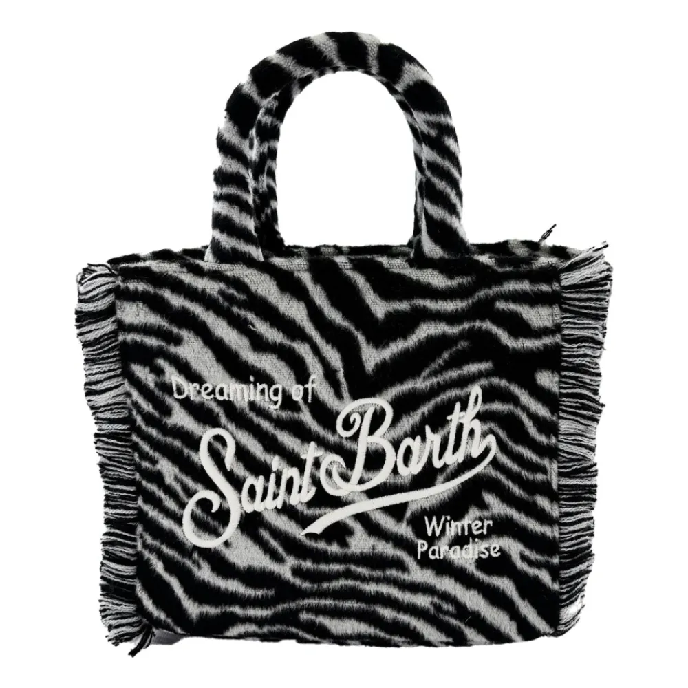 MC2 Saint Barth Vivian Handtasche aus weichem Teddy-Stoff mit einem auffälligen Zebra-Print. Die Tasche kombiniert ein markantes, gesticktes Saint Barth-Logo mit einem abnehmbaren Schulterriemen und Griffen aus Synthetikleder für einen vielseitigen Alltagsgebrauch. Hauptmerkmale: Schwarz | Polyester | Abnehmbarer Schulterriemen | Griffe aus Synthetikleder | Sorgfältig verarbeitete Details | Zebra-Print | Gesticktes Saint Barth-Logo | Auffälliges Animal-Print-Design | Abmessungen und Passform: 30 x 20 x 12 cm | Zusammensetzung und Pflege: 85 % Polyester | 15 % Wolle | Befolgen Sie die Waschanleitung auf dem Etikett im Inneren des Kleidungsstücks.