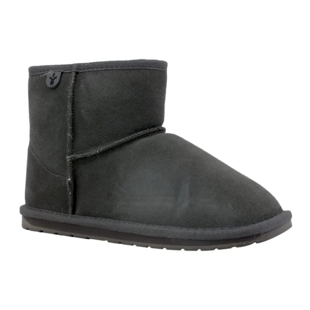 Emu Wallaby Mini ist ein kinderfreundlicher Knöchelschuh, der für den täglichen Gebrauch entwickelt wurde. Er kombiniert ein Obermaterial aus Leder mit einem weichen Futter aus Merinowolle, um Wärme und einfachen An- und Ausziehkomfort für aktive Tage zu bieten. Hauptmerkmale: Grau | Grigio | Leder | Merinowollfutter für Wärme und Atmungsaktivität | Wasserabweisend | Slip-on-Design für einfaches Anziehen | Gepolsterte EVA-Zwischensohle für Komfort | Flexible Gummisohle für Traktion | Knöchelhoher Stiefel | Slip-on-Silhouette mit einfachen Steppdetails | Maße & Passform: Höhe: 12,25 cm (ca. bei Größe 12) | Schaftumfang: 28 cm (ca. bei Größe 12) | Sohlenstärke: 1,3 cm (ca.) | Zusammensetzung & Pflege: Obermaterial: Leder (Wildleder) | Futter: 100 % australische Merinowolle | Zwischensohle: EVA | Sohle: Gummi | Mit kaltem Wasser und einem für Wolle geeigneten Reiniger punktuell reinigen oder einen speziellen Wildleder-/Lammfellreiniger verwenden. Nicht in der Maschine waschen oder Hitze aussetzen. Bei Bedarf mit einem Wildleder-/Lammfellschutzmittel behandeln.