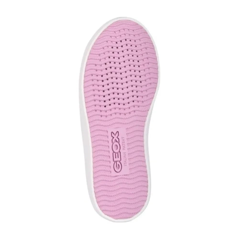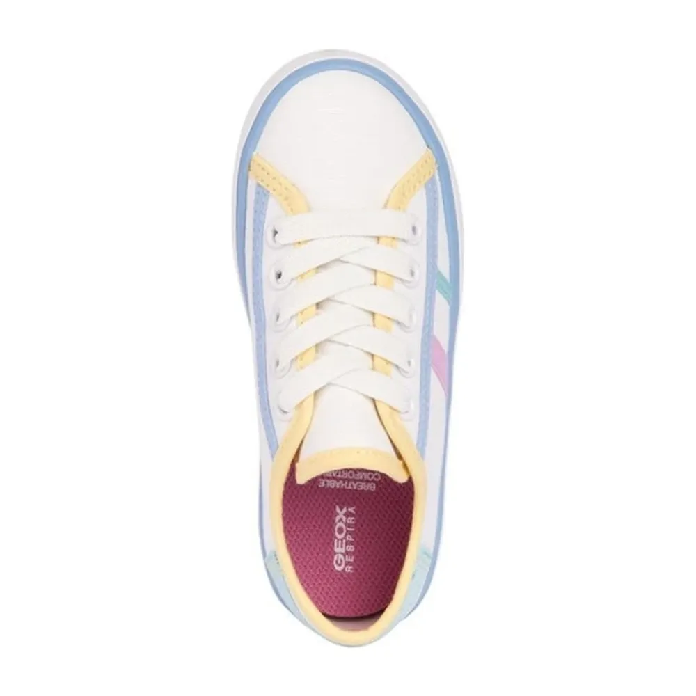 Geox Mädchen Weiße Sneakers – Stilvolle und bequeme Sneakers für Mädchen von Geox. Hergestellt aus 100% Polyester-Obermaterial, 93% Baumwolle und 7% Mikrofaser-Futter, und 100% Gummilaufsohle. Perfekt für aktive Kinder. Produktcode: J454NF 00010 C1372.