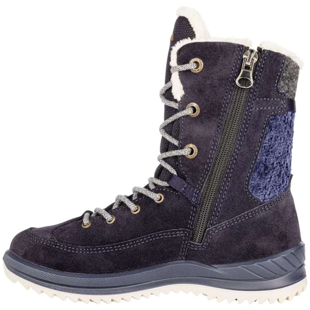 Lassen Sie Ihre kleinen Eisprinzessinnen mit Stil in den Schnee treten mit den BIANCA GTX Stiefeln von Lowa. Diese vielseitigen Stiefel verfügen über ein gemütliches GORE-TEX Partelana-Futter mit Wolle für Wärme und Trockenheit. Das elegante Design mit einem ornamentalen Druck am Schaft verleiht eine Note von Raffinesse. Das Stollendesign der Wintersohle LOWA AL-G hinterlässt lustige Spuren im Schnee und unterstützt junge Abenteurer. Mit zwei PU-Schichten für optimale Dämpfung sind diese Stiefel perfekt für den Winter. Stoffdetails: 70% Veloursleder; 30% Textil.