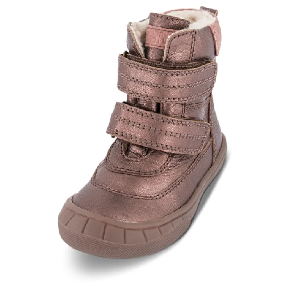 Hier sind die Skofus Winterstiefel für Mädchen, perfekt für kalte und nasse Wintertage. Mit einer Tex-Membran und einem Teddyfutter sind diese Stiefel warm, wasserdicht und atmungsaktiv, was optimalen Komfort und ein trockenes und angenehmes Klima für kleine Füße gewährleistet. Das metallische Lederoberteil verleiht einen Hauch von Stil, während die herausnehmbaren Einlegesohlen, mit weichem Teddy gefüttert, zusätzliche Wärme bieten. Die flexiblen und leichten TPR-Laufsohlen bieten guten Halt. Die beiden Klettverschlüsse ermöglichen ein einfaches An- und Ausziehen und sorgen für eine gute Passform. Wir empfehlen, 1-1,5 cm für das Wachstum hinzuzufügen.